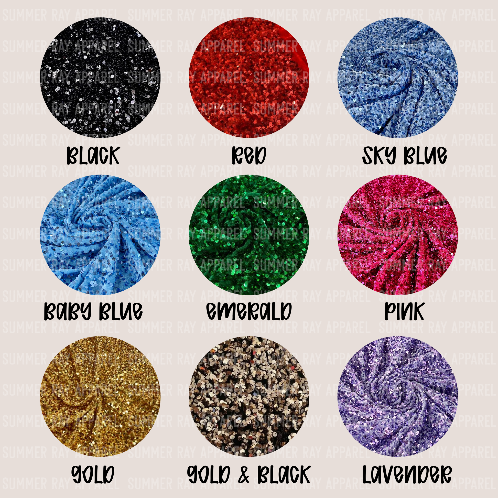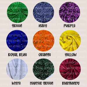 *Color Charts Shown for sweatshirt colors & Sequin Colors